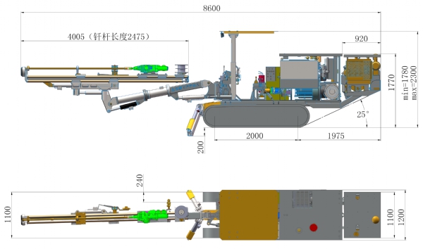 凿岩机钻臂升降平稳,回转灵活,钻孔定位准确;